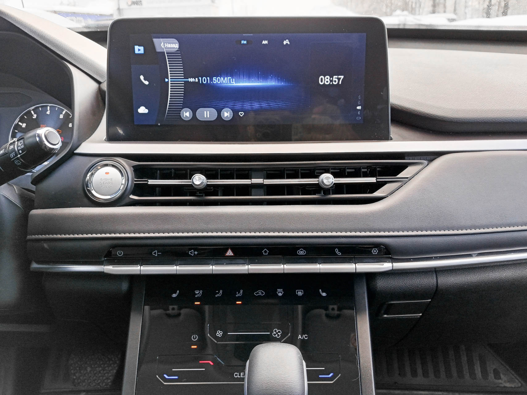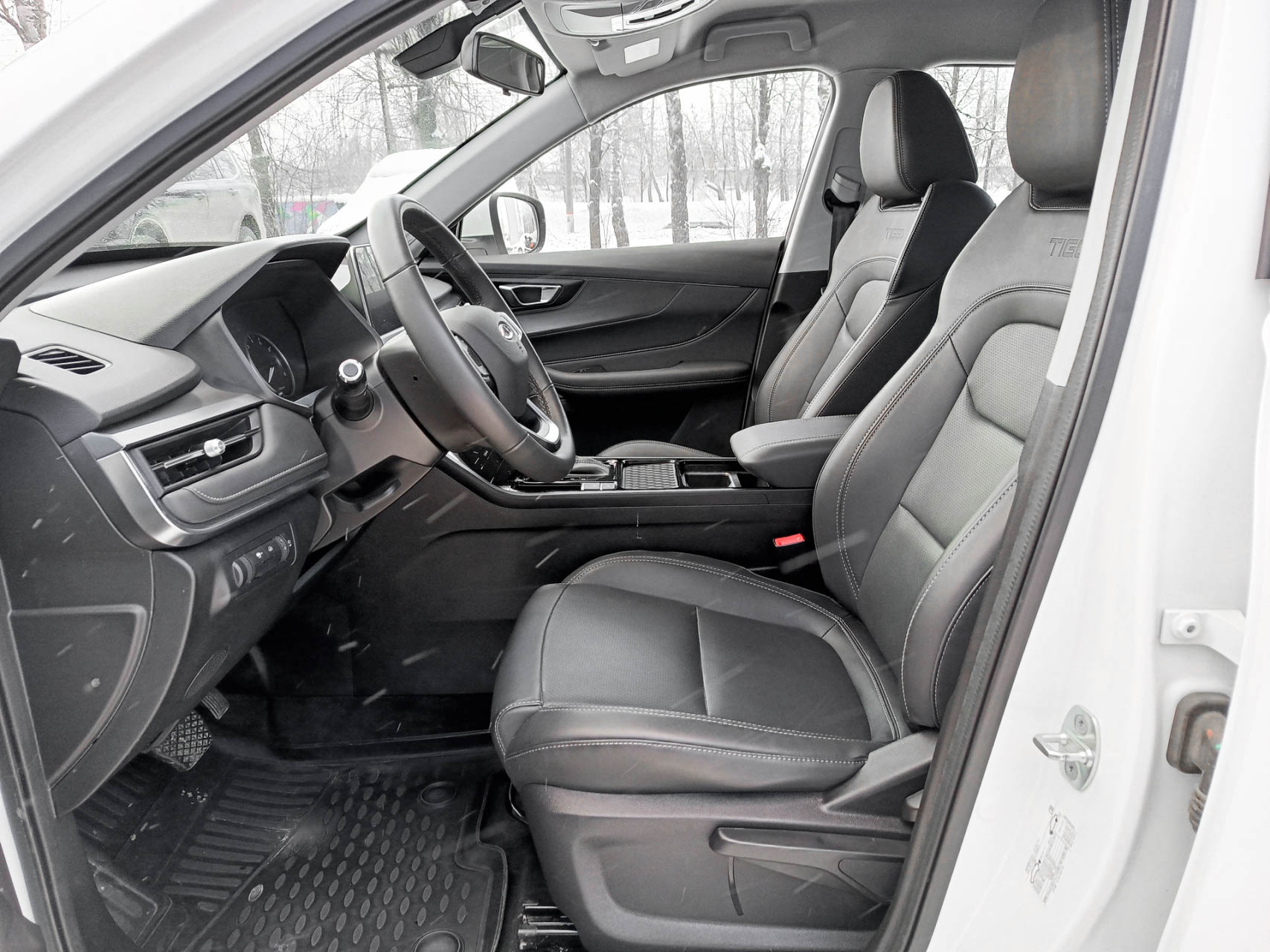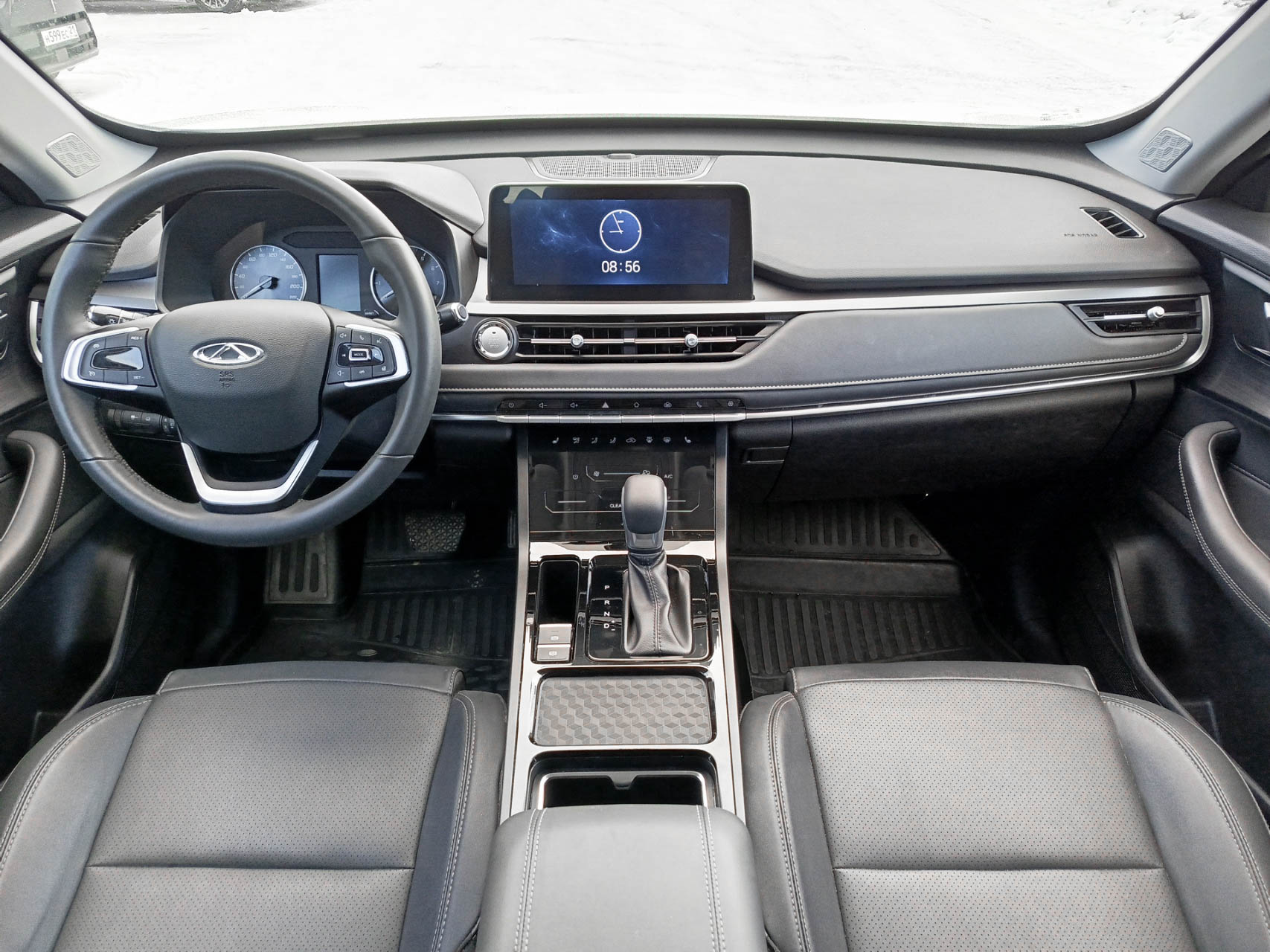 Комплектация включает: кондиционер, подогрев передних сидений, 4 стеклоподъёмника, круиз-контроль, доступ без ключа и дистанционный запуск двигателя, датчик света, обогрев зеркал, заднего и лобового стекла, обогрев форсунок стеклоомывателя и руля, подушки безопасности водителя и пассажира, датчики давления в шинах, камеру заднего вида, кожаный салон.